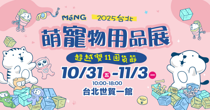 2025/10/31 10:00(+0800)2025年度最大貓狗囤貨節!台北萌寵物用品展搶先雙11熱潮 毛孩爸媽,準備衝了!2025台北萌寵物用品展將在 10/31 – 11/3 於台北世貿一館盛大開展,四天限定的「超越雙11囤貨節」強勢開跑!集結全台最熱銷的飼料、凍乾、鮮食、推車、服飾、清潔用品、保健品等,以及話題智能寵物Reserve Now -